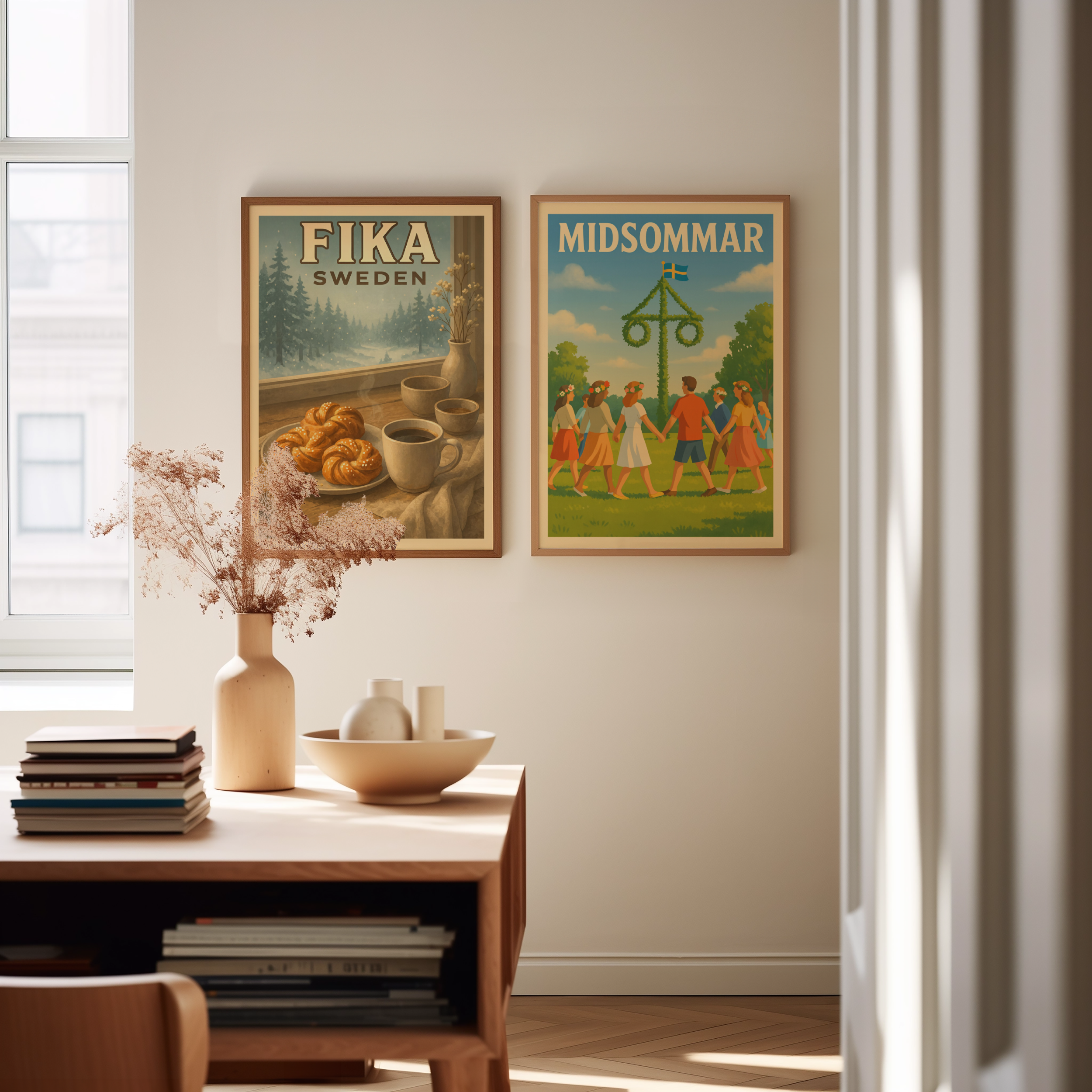 Parfaite pour décorer une cuisine, un salon ou un espace de travail, cette affiche évoque la douceur d’un instant suspendu en Suède.