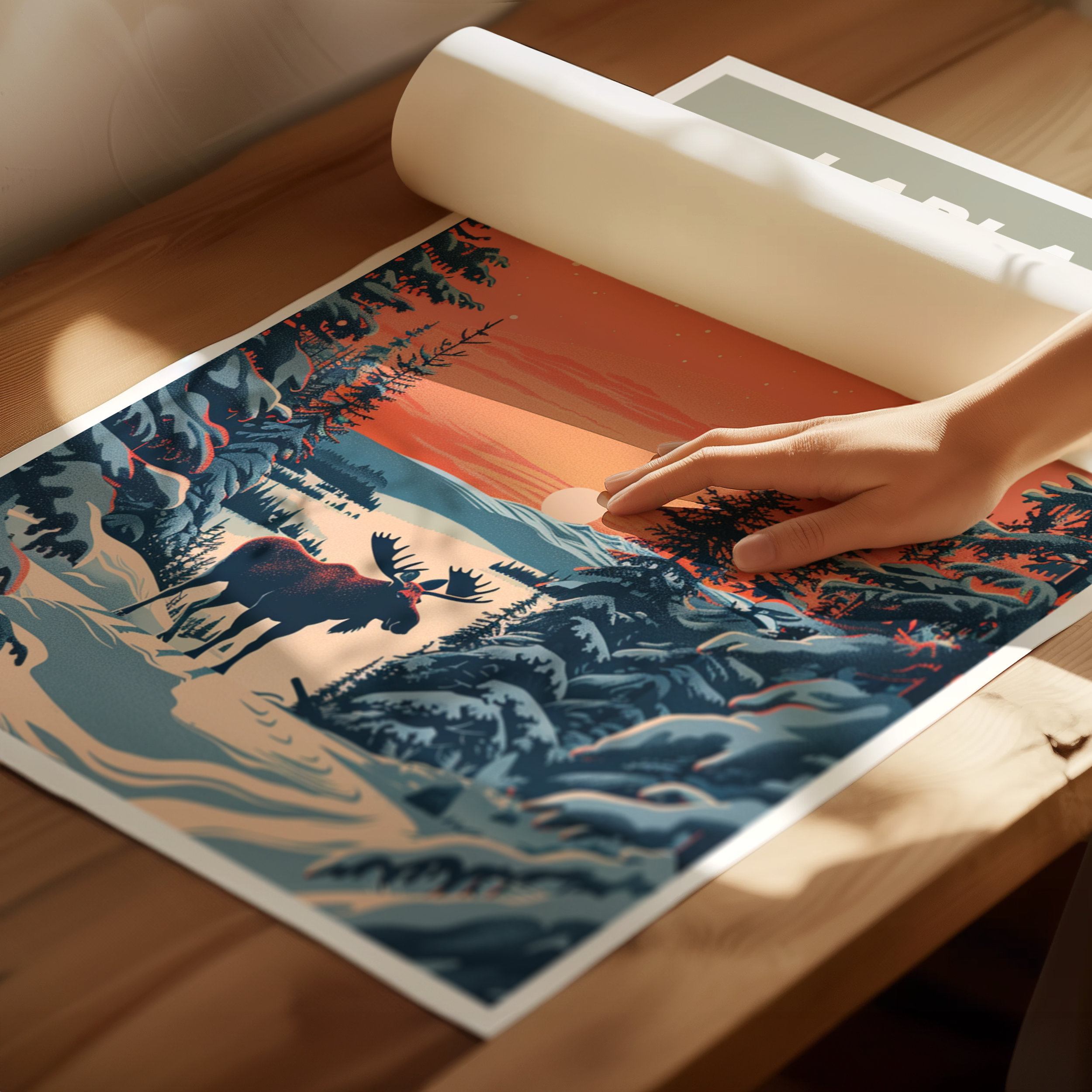 Disponible en six tailles différentes, cette affiche murale transporte instantanément votre espace dans un monde de magie hivernale et de beauté sauvage. Que ce soit dans un salon confortable, une chambre à coucher apaisante ou un bureau inspirant, "Älg" ajoute une touche de grandeur nordique à votre décor intérieur.